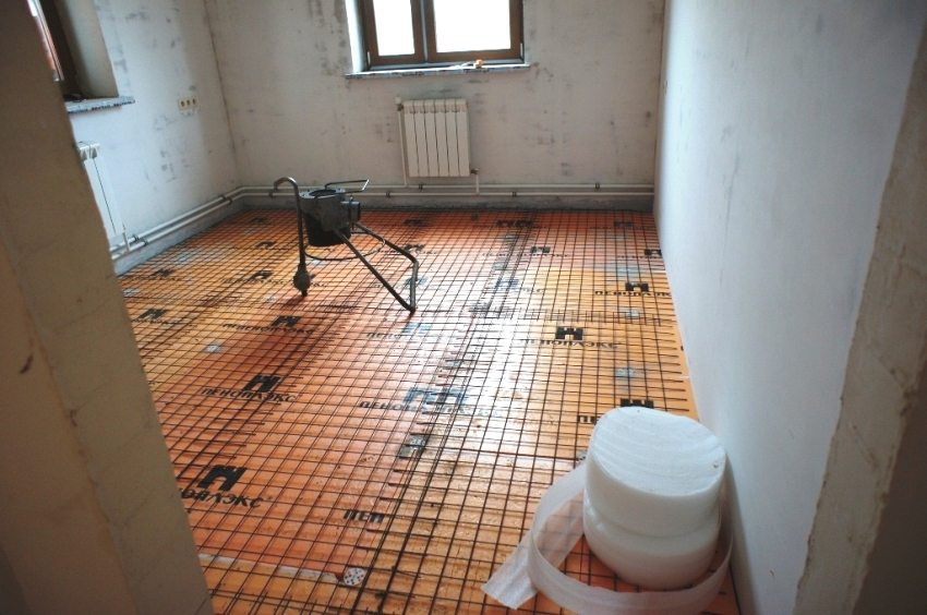 Penebat lantai dengan penoplex menggunakan campuran meratakan diri