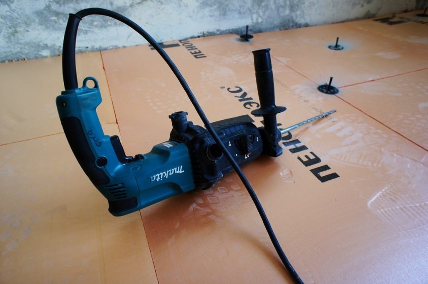 Untuk melihat lebih dekat kes ini, mari kita ambil contoh dengan asas konkrit. Sekiranya pangsapuri tidak terletak di tingkat pertama bangunan, maka ketebalan penebat mungkin kurang dari 5 cm. Ini cukup mencukupi. Sebelum memulakan kerja utama meletakkan busa di bawah permukaan lantai, lengkap pembongkaran lapisan lama... Sekiranya terdapat lapisan simen, keluarkan dengan perforator. Kemudian papak lantai bebas dari kotoran dan habuk, tutup semua penyelewengan dan lubang busa dari utiliti.