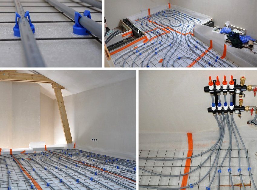 Terdapat dua cara untuk membina lantai yang dipanaskan air: screed dan lantai. Kaedah pertama adalah yang paling biasa. Ia melibatkan menuangkan lapisan konkrit ke atas paip litar. Kaedah ini memberikan pemanasan yang baik untuk semua lapisan lantai. Kaedah kedua adalah kurang sukar, kerana paip diletakkan di atas lapisan atau papak, setelah itu ditutup dari atas dengan lantai yang kasar dan bersih. Kaedah ini mengurangkan kecekapan penggunaan haba.
