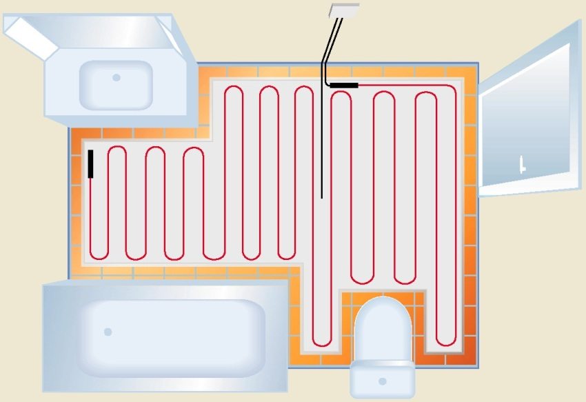 Contoh meletakkan kabel pemanasan di bawah jubin bilik mandi