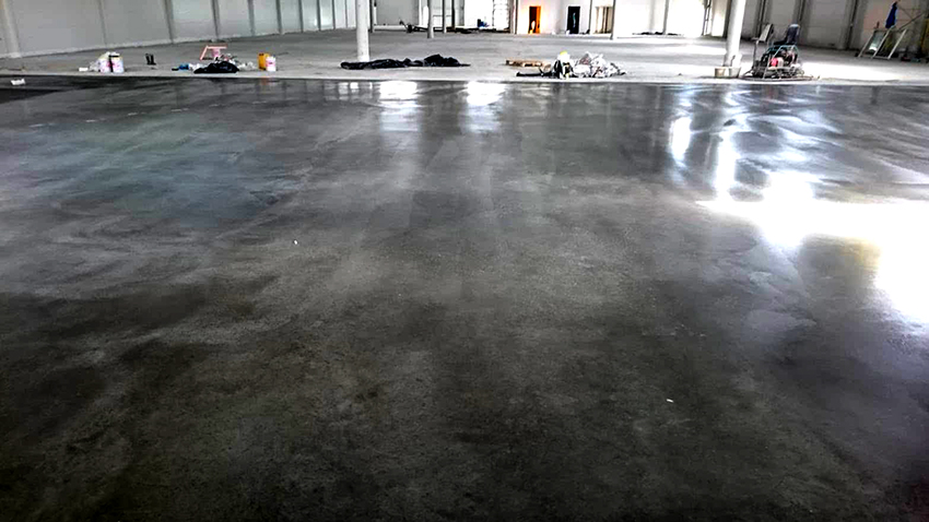Sekiranya anda berhasrat mengecat lapisan yang baru dicurahkan, anda mesti menunggu selama lima hari agar konkrit itu bertambah kuat. Selama ini, kelembapan berlebihan akan menguap dari bahan, jadi lebih mudah diproses. Lima hari selepas menuangkan, permukaan lapisan ditutup dengan alat yang disebut "helikopter". Pengamplasan diperlukan untuk menyingkirkan lapisan atas yang tidak stabil. Ia adalah "susu" simen yang mengeras. Di samping itu, kecacatan permukaan kecil dihilangkan dengan mengisar dan liang-liang dibuka.