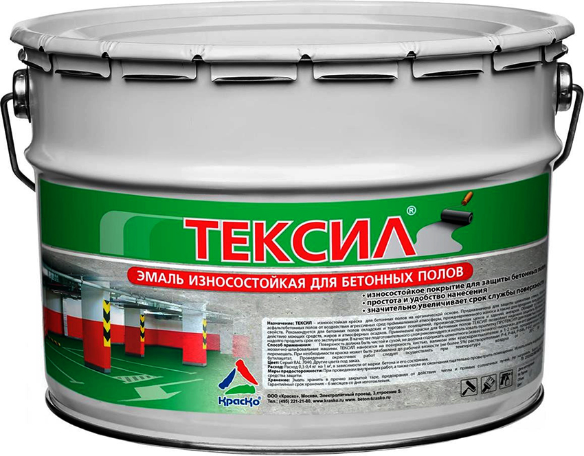 "Texil" adalah pewarna berdasarkan resin PVC. Rumusan ini menghasilkan kemasan matt pada permukaan yang dirawat yang sangat tahan pakai. Pewarna jenis ini memberikan perlindungan lantai konkrit yang boleh dipercayai dari kerosakan mekanikal, serta kesan negatif pemendakan.Dengan bantuan kompaun "Texil", anda dapat memperpanjang jangka hayat asas konkrit dengan ketara.