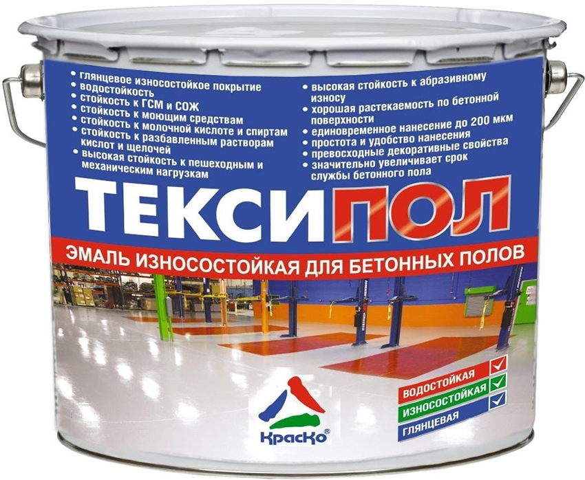 "Teksipol" dibuat berdasarkan resin akrilik. Pewarna ini mengandungi pelarut organik. Keadaan ini sangat mempengaruhi harga cat akrilik untuk lantai konkrit. Sebaliknya, prestasi lapisan telah meningkat dengan ketara.