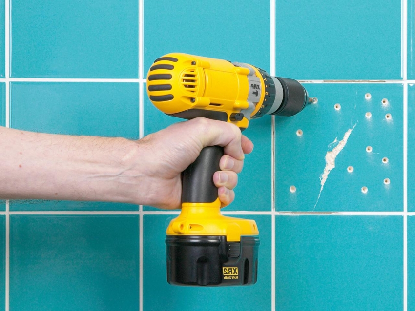 Dengan bilah pisau atau pembuka, anda perlu berjalan dari kedua sisi pada sudut dan lurus. Semasa melakukan ini, berhati-hatilah untuk tidak memotong tepi jubin. Perlu diingat bahawa melakukan ini "secara manual" tidak akan berfungsi dengan cepat, jadi anda boleh menggunakan gerudi dengan gerudi nipis atau pahat elektrik.