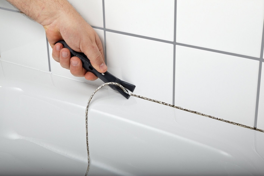 Grout silikon juga memerlukan pembongkaran dan penggantian, terutama jika ruangan belum dilengkapi dengan pengudaraan yang baik.Selalunya anda harus menghadapi kenyataan bahawa jahitannya terkena acuan, yang hampir mustahil untuk dilepaskan. Oleh itu, sebelum meletakkan jubin baru di atas jubin lama, anda perlu menjaga kebersihan sendi.