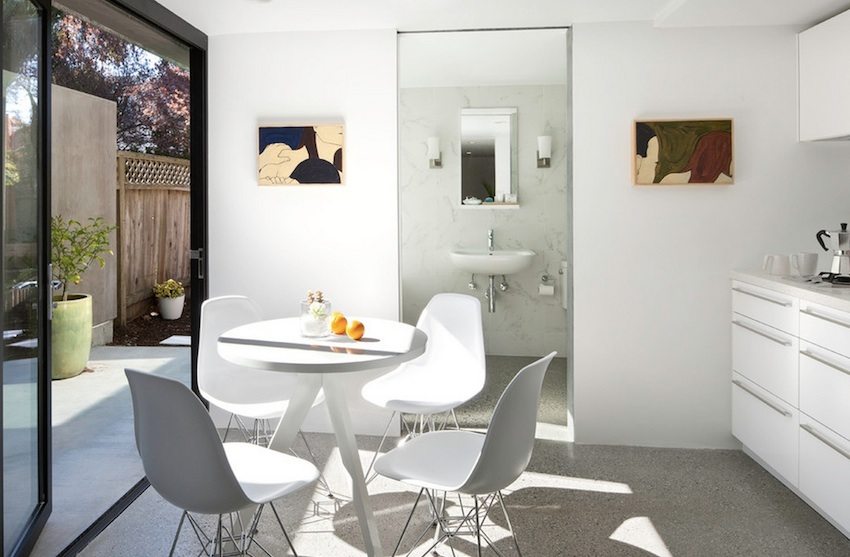 Oleh kerana ketahanan terhadap kelembapan, lantai meratakan diri dapat dipasang di bilik mandi dan dapur