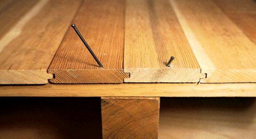 Bagaimana memasang lantai lidah dan alur? Dalam kes ini, setiap elemen berikutnya mesti sesuai dengan alur yang sebelumnya. Sekiranya perlu, produk dipalu satu sama lain untuk mengelakkan pembentukan keretakan dan jurang.