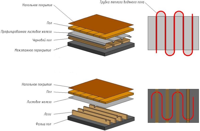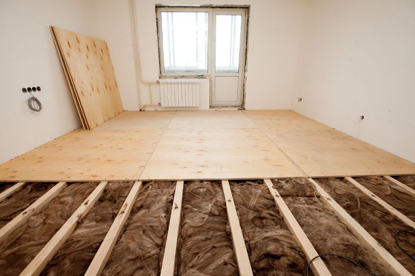 Pangkalan untuk lantai disusun, paling kerap, dalam dua cara - menggunakan papan lapis atau kayu balak