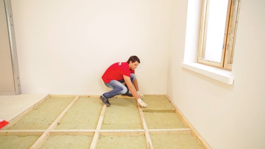 Dalam prosesnya, anda harus membuat permukaan rata, yang diperiksa menggunakan level.Seterusnya, lapisan tahan kelembapan diletakkan di pangkalan yang disiapkan dengan pendekatan 10 cm ke dinding. Penebat diletakkan di antara balak, dan seluruh struktur ditutup dengan kalis air. Seterusnya, papan lapis dipasang di lantai kayu, di atasnya lantai... Peringkat terakhir adalah pemasangan papan skirting.