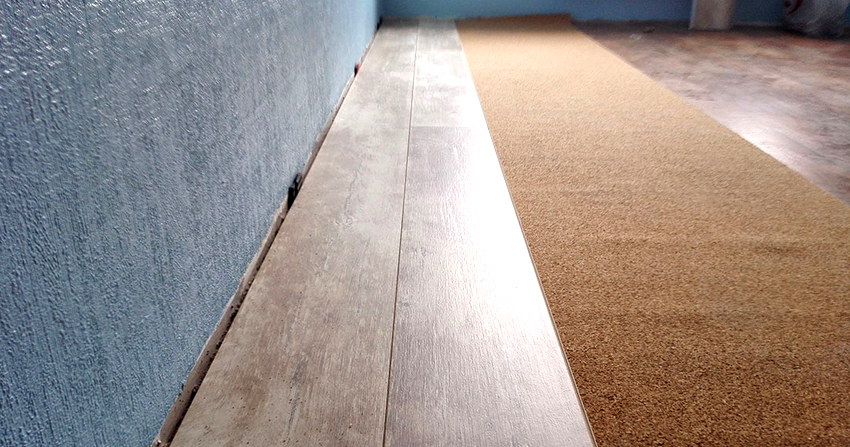 Semasa memasang lantai lamina tanpa ambang, adalah mustahak untuk meletakkan lapisan bawah terlebih dahulu. Ketebalan substrat optimum ialah 3 mm. Bahan gabus sangat sesuai untuk ini. Sangat penting untuk menyediakan substrat - semestinya sekata, licin dan kering mungkin.