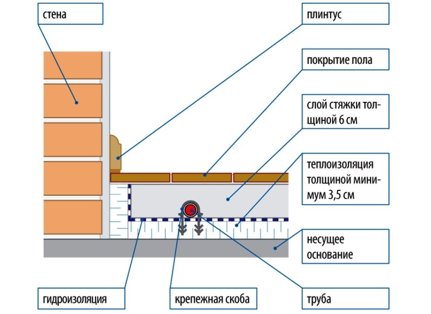 Untuk memasang lantai yang dipanaskan air di bahagian dalam yang sudah siap, anda boleh menggunakan kaedah pengeringan (bersih)