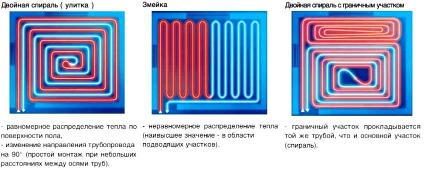 Di atas tikar untuk lantai air suam, paip yang diperbuat daripada polietilena bersilang silang atau logam-plastik dengan diameter 10 hingga 20 mm diletakkan. Mereka dibentangkan dalam lingkaran atau ular dengan cara yang istimewa. Semakin dekat paip berpusing satu sama lain, semakin banyak tenaga haba akan diambil kira per meter persegi lantai. Sebaiknya jarak ini tidak lebih dari 30 cm.