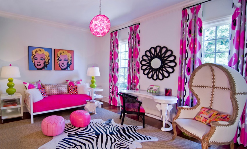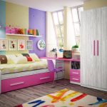 Di dalam bilik seorang gadis remaja, mobiliti dalaman adalah penting, kerana mood anak dapat berubah, sehubungan dengan itu ada keinginan untuk mengubah sesuatu di sekelilingnya. Gambar di dinding, langsir, elemen tekstil berubah lebih kerap. Kadang-kadang, dalam dorongan kreatif, warna dinding juga berubah, jadi walaupun untuk pergantian acara, seseorang harus bersiap sedia.