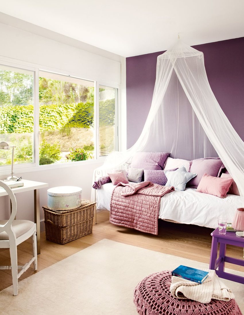 Ramai orang percaya bahawa semasa menghias bilik gadis, anda perlu menggunakan sebilangan besar aksesori, seperti busur, ruffles, boneka dan elemen hiasan lain yang mewujudkan suasana romantis. Walau bagaimanapun, semakin kerap dalam foto taman asuhan kanak-kanak perempuan, anda dapat melihat arah aliran sebaliknya, apabila jumlah aksesori dikurangkan kepada minimum. Pada masa yang sama, banyak ruang kosong masih ada di dalam bilik. Pakar psikologi menasihatkan agar tidak memperbaikinya dengan semaian butiran untuk memberi ruang kepada fantasi anak itu menjadi kenyataan.