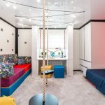 Banyak pilihan warna dan tekstur akan menjadikan siling menjadi bahagian aksen dari bahagian dalam bilik kanak-kanak yang cantik untuk kanak-kanak perempuan atau lelaki. Siling regangan di bilik kanak-kanak, di mana gambar yang tidak biasa digunakan, kelihatan sangat asli pada foto. Anak boleh memilih sendiri corak atau warna siling.