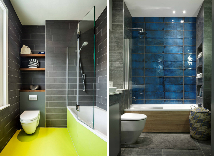 Memilih warna jubin di bilik mandi. Reka bentuk bilik