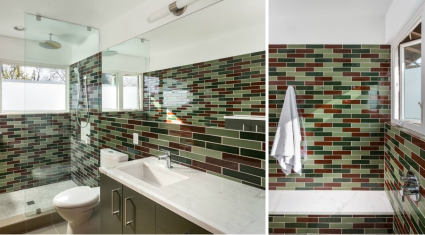 Nasihat berguna! Ubin kaca boleh digunakan sebagai hiasan untuk penutup dinding berjubin utama.