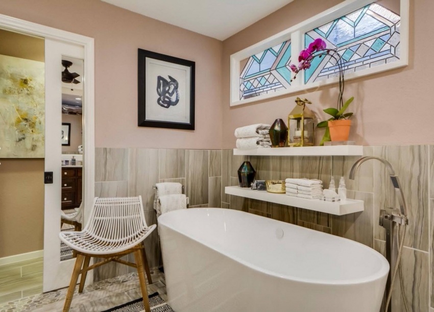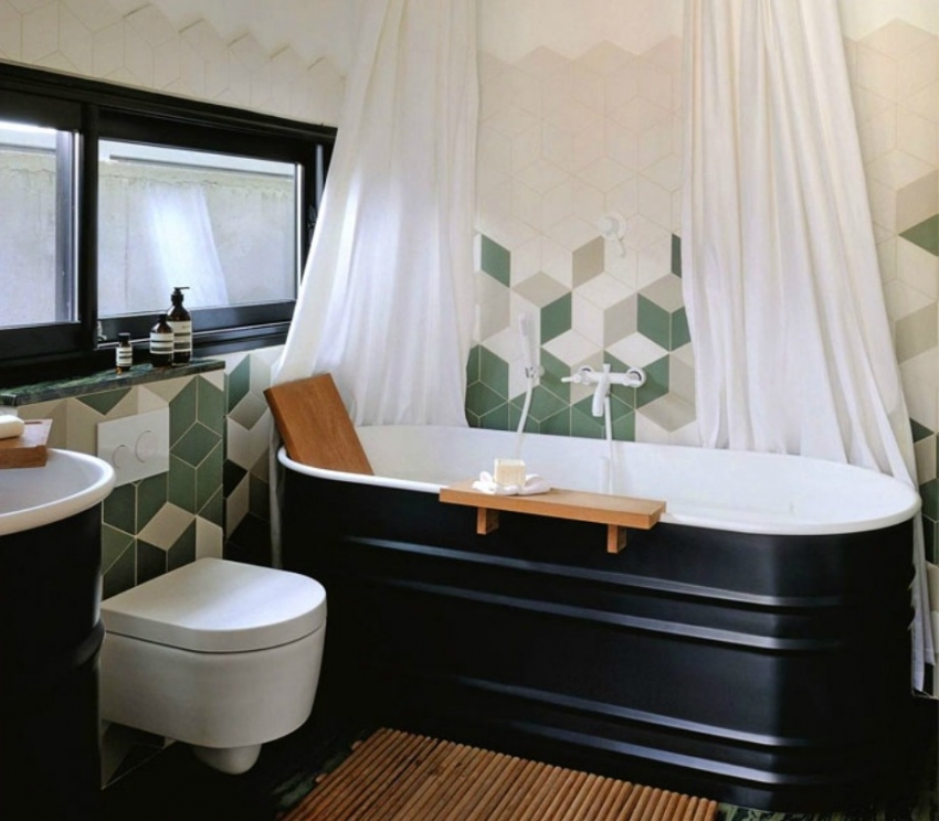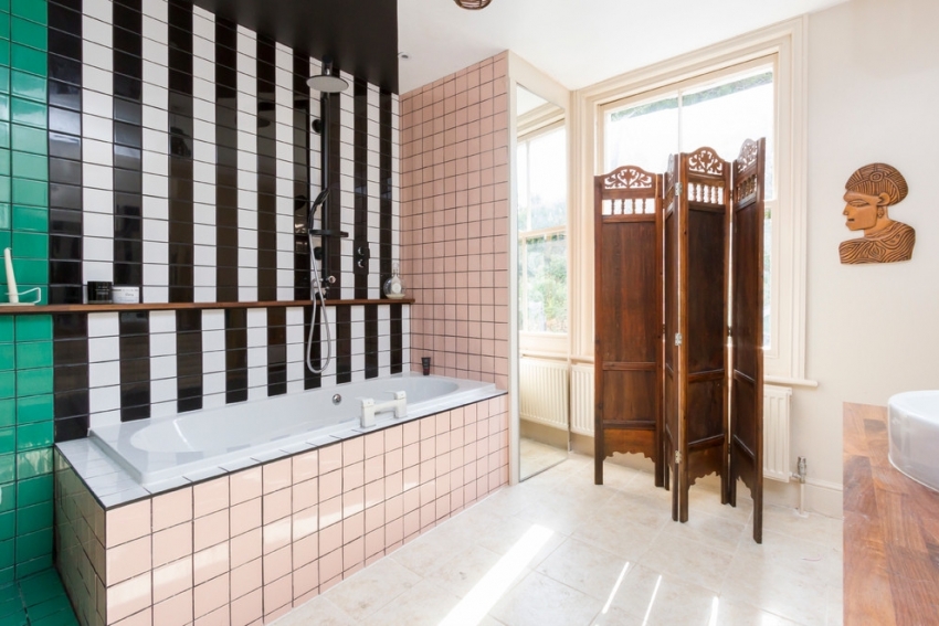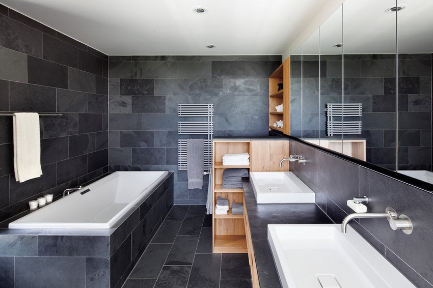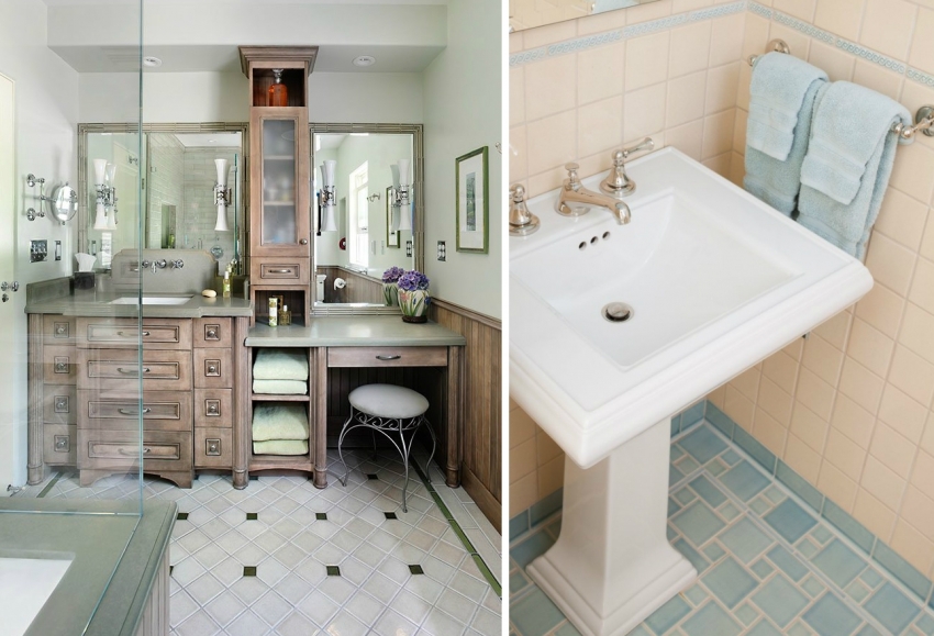 Reka bentuk bilik mandi: foto bilik jubin yang dibuat dengan gaya yang berbeza