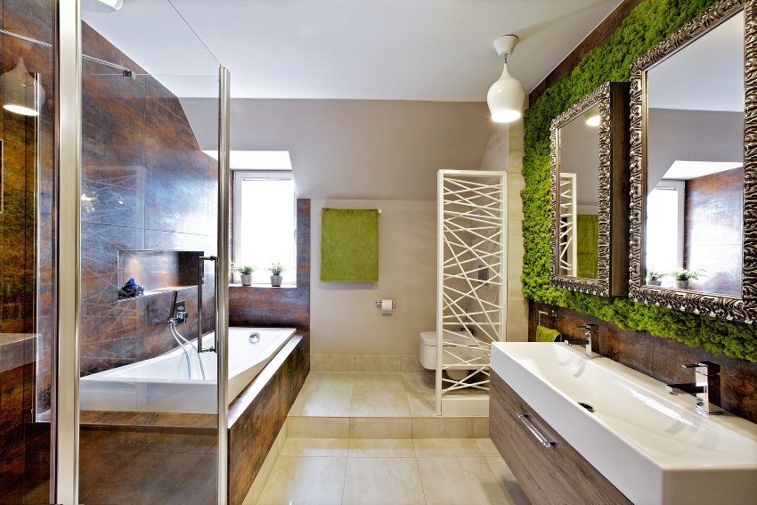 Reka bentuk gaya bilik mandi eko: perincian penting
