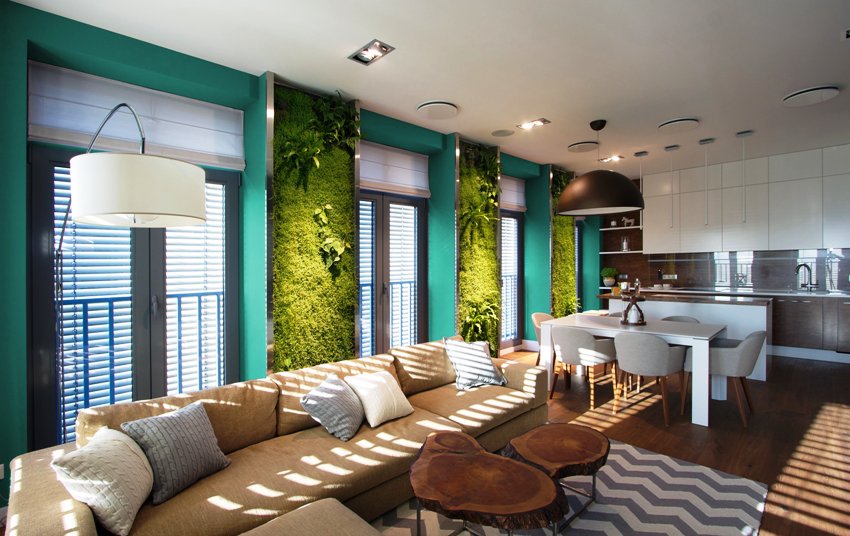 Tumbuhan hidup dalam jumlah besar adalah bahagian yang sangat diperlukan dari dalaman dapur gaya eko