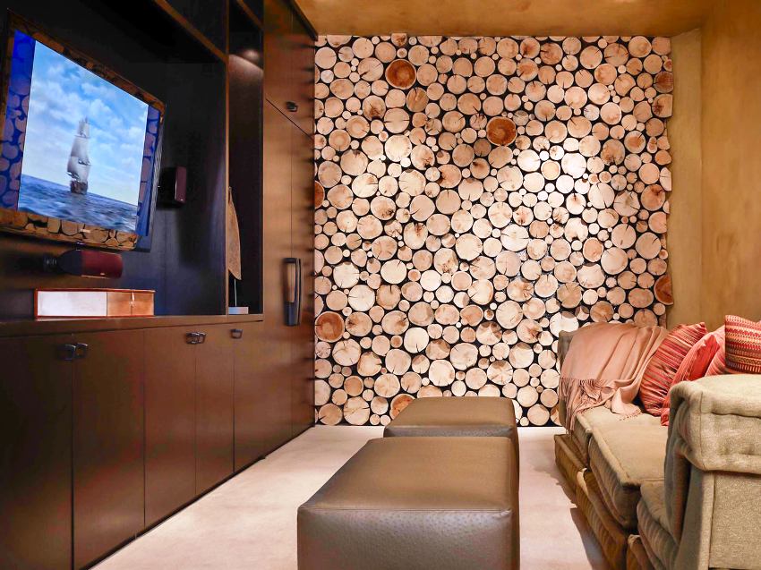 Untuk hiasan dinding, kertas dinding buluh atau rami, sarung yang terbuat dari papan kayu atau mati, serta panel dinding yang terbuat dari kayu, gabus atau batu menghadap sangat sesuai. Penutup lantai di ruangan seperti itu adalah parket, papan yang tidak dicat, lebih jarang jubin atau batu. Silingnya tidak memerlukan hiasan khas, cukup untuk memutihkannya atau memberikan sentuhan chalet, berselubung dengan kayu dan dihiasi dengan balok.
