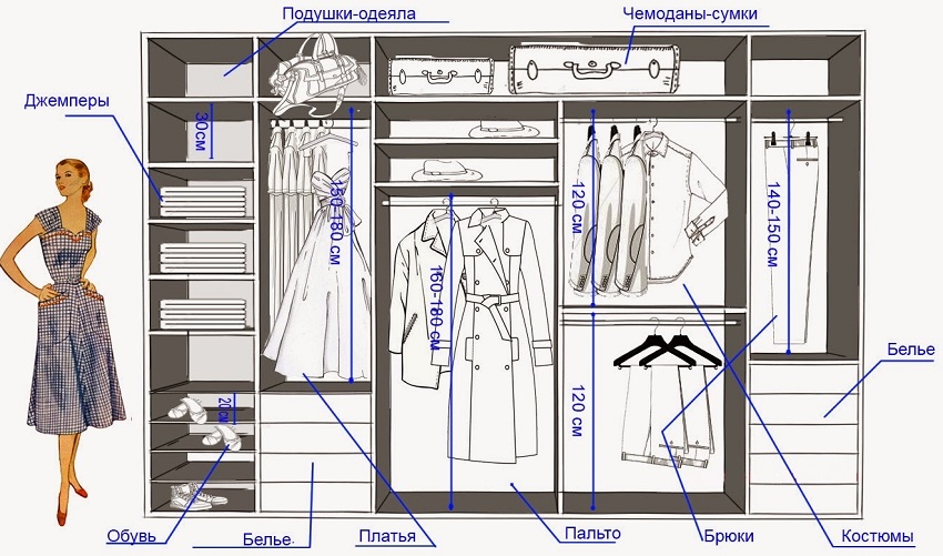 Bagi mereka yang berhasrat memasang sistem almari pakaian dengan tangan mereka sendiri, perlu memperhatikan bukan sahaja ukuran ruangan itu sendiri, tetapi juga kemungkinan pengisian dalaman yang ringkas dan rasional. Untuk mencapai ketepatan maksimum, disarankan untuk membuat pra-pengembangan gambar dan diagram sistem penyimpanan masa depan. Projek reka bentuk siap untuk bilik persalinan dengan tangan anda sendiri, gambar dan gambar rajah akan menjadi contoh yang baik ketika membuat versi anda sendiri.