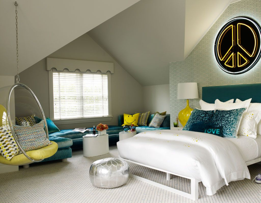 Loteng. Bahagian dalaman remaja klasik dengan sentuhan industri. Menganggap adanya dinding bata dan permukaan yang lusuh. Adalah baik untuk membiarkan balok siling terkena dan menggunakan sebilangan besar sumber cahaya buatan. Sangat mudah untuk menunjukkan keperibadian di kawasan dalaman seperti itu.