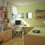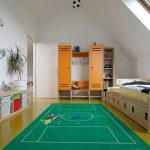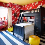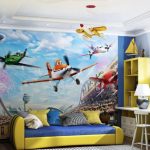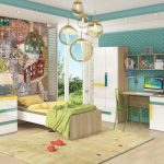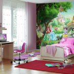 Ketika kanak-kanak itu membesar, ruangan itu dipenuhi dengan sebilangan besar perincian, kerana walaupun untuk kanak-kanak prasekolah, ia perlu menyiapkan meja di mana dia dapat kreatif. Untuk mengekalkan integriti kertas dinding, adalah wajar untuk membeli sebuah pasang kecil. Ia akan menjadi baik apabila sebuah kompleks sukan akan dipasang di bilik untuk anak lelaki dan perempuan, yang membolehkan anak-anak menanamkan minat sukan pada anak-anak sejak kecil.