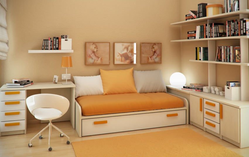 Beberapa kawasan berfungsi mesti diasingkan di dalam bilik: bekerja, tidur, berehat dan bermain, tempat menyimpan pakaian