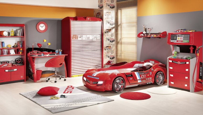 Oleh itu, semasa mengatur bilik untuk kanak-kanak prasekolah, lebih banyak ruang kosong harus ditinggalkan di mana anak boleh mengatur trek untuk kereta atau jalan kereta api yang besar. Sudah tentu, kanak-kanak seperti itu sudah perlu memasang meja kecil dengan kerusi, di mana dia boleh memasang pereka.
