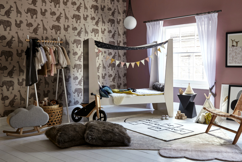 Bahagian dalam bilik kanak-kanak: pilihan penamat dinding dan lantai