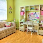 Walaupun di bilik gadis kecil, adalah wajar untuk memasang meja solek kecil, kerana sejak kecil kanak-kanak perempuan gemar mempersiapkan diri di depan cermin. Di sekitar meja, adalah penting untuk mengatur bilangan kotak yang mencukupi di mana barang-barang kecil yang diperlukan akan disimpan. Agar meja dinyalakan dengan baik, disarankan meletakkannya di dekat tingkap.