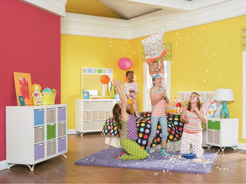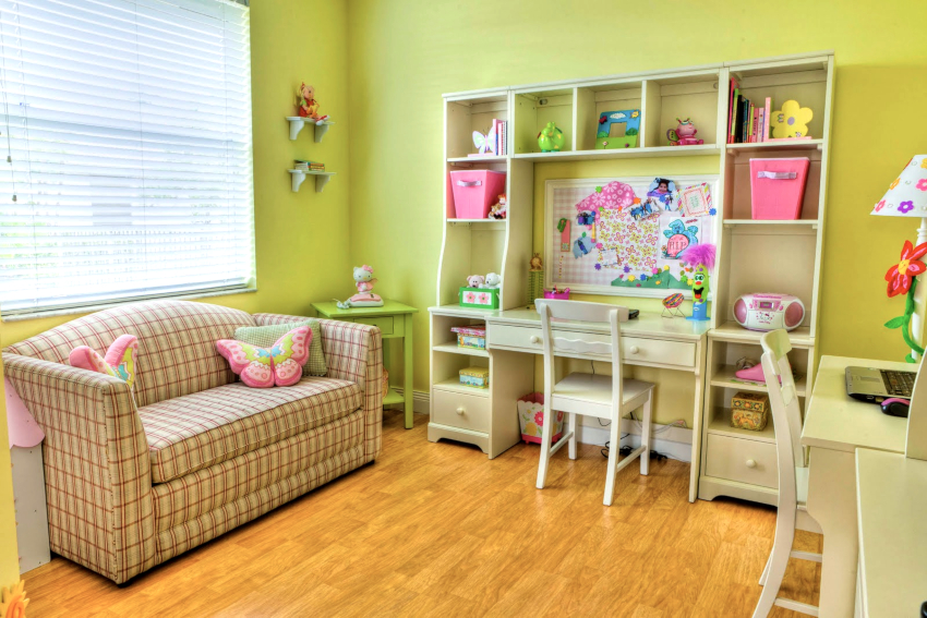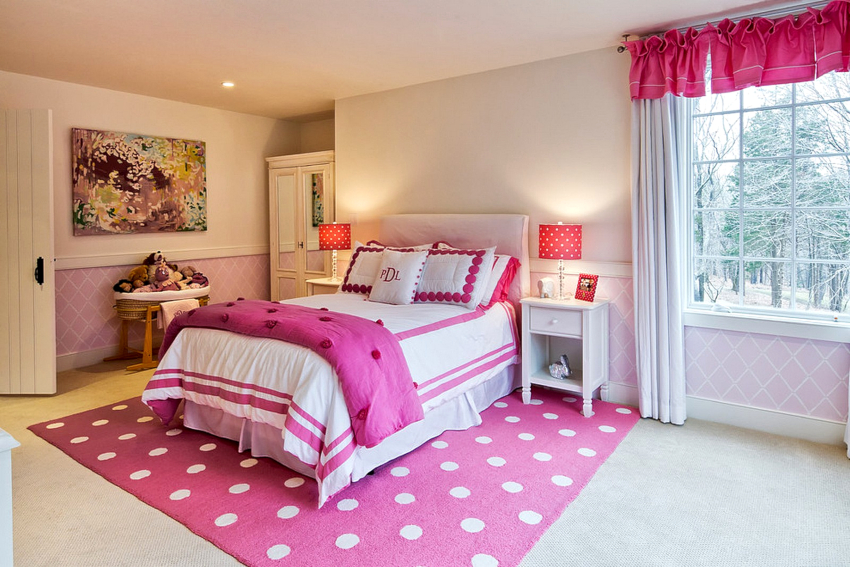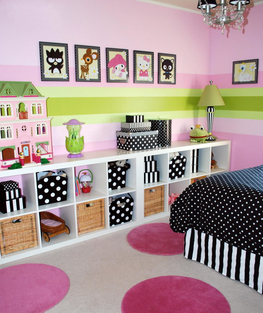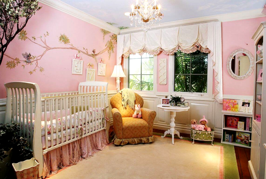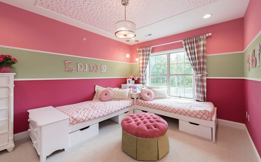 Bahagian dalam bilik kanak-kanak perempuan sering dibuat menggunakan warna pastel, seperti: