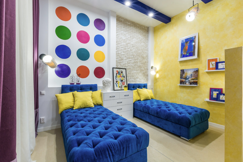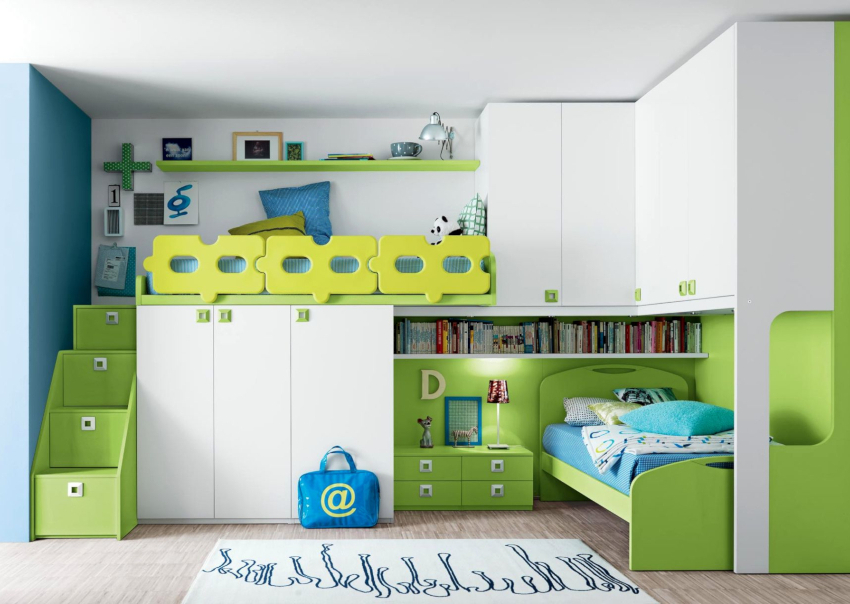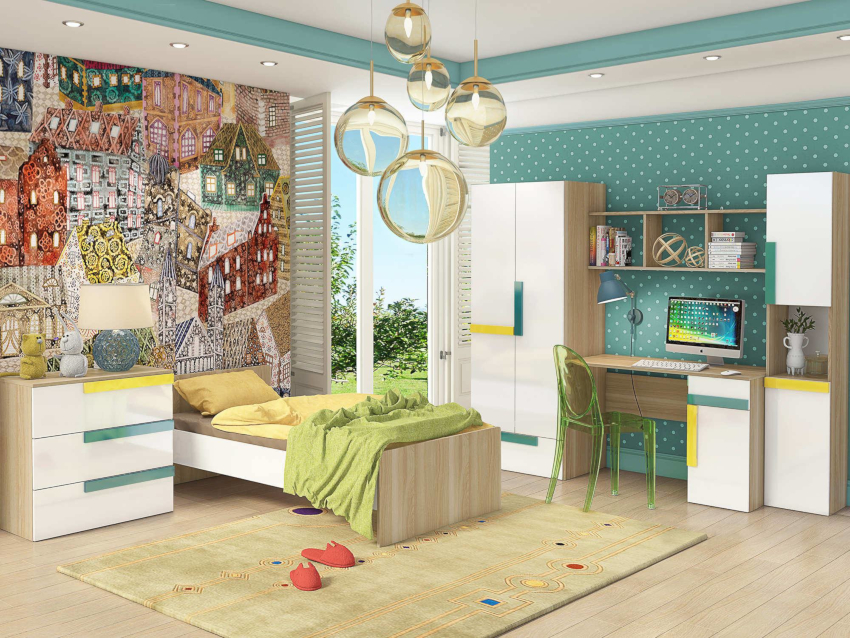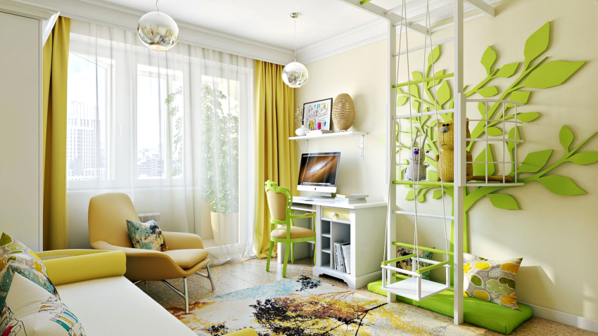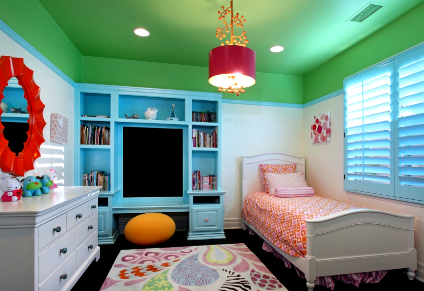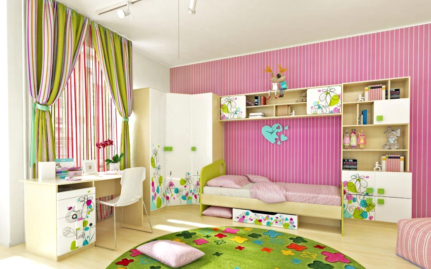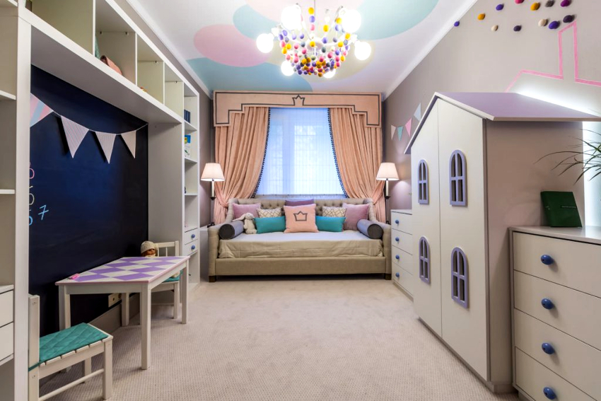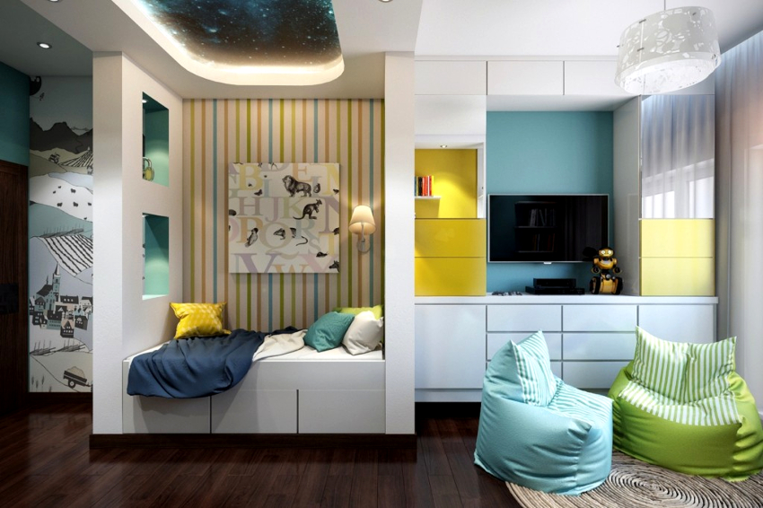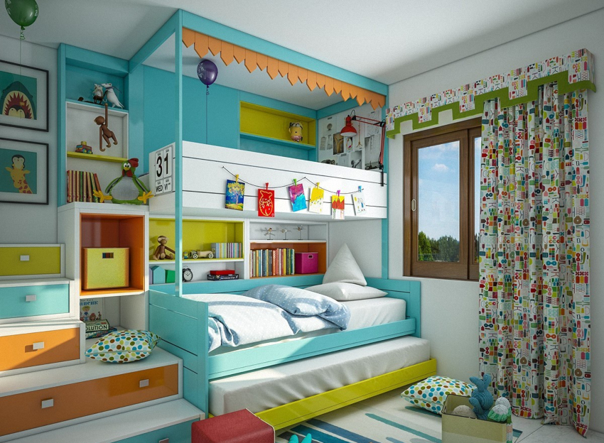 Warna yang menarik, pengezonan yang betul dan perabot praktikal. Pilihan hiasan dan aksesori yang kompeten untuk setiap kanak-kanak.
