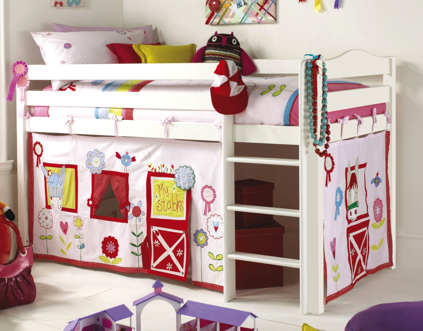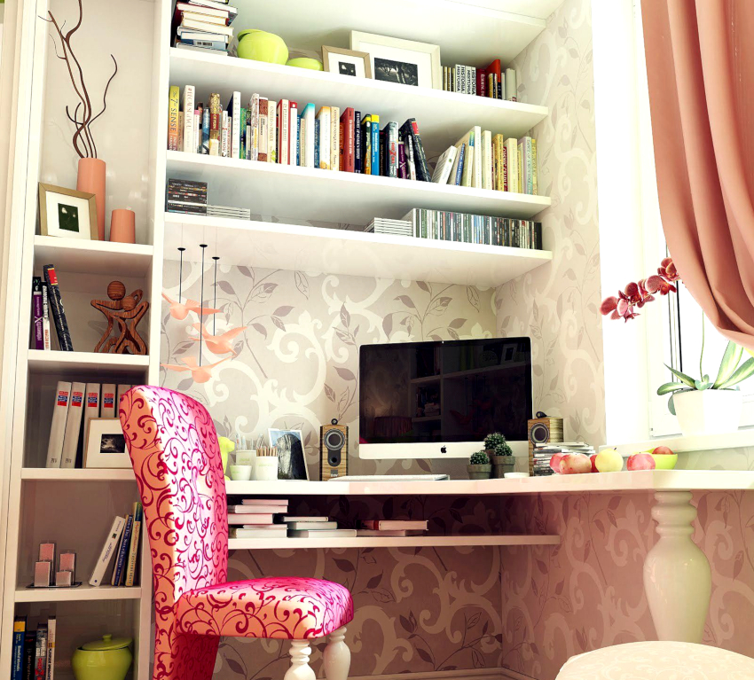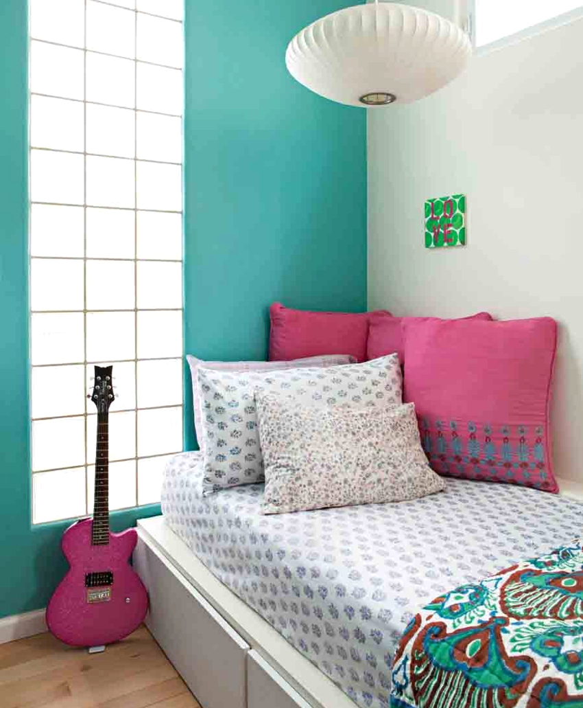 Sebilangan besar bantal dan keranda sering digunakan sebagai aksesori. Adalah wajar untuk meletakkan kolaj dari foto, seni dan karya kreatif gadis itu di dinding.