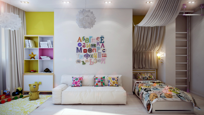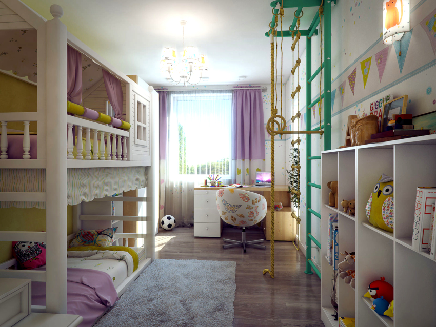 Bilik kanak-kanak untuk lelaki dan perempuan: kami memikirkan semuanya dengan terperinci