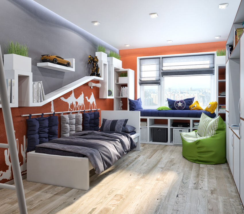 Semasa membuat bahagian dalam bilik untuk seorang remaja lelaki (dan anak-anak yang lebih muda), diperlukan untuk mewujudkan ruang yang selamat dan selesa, kerana kanak-kanak lelaki sangat mudah bergerak dengan perangai dan lebih suka permainan aktif. Oleh itu, adalah penting bahawa ruangan mempunyai ruang sebanyak mungkin dan sebilangan sudut tajam yang mungkin. Adalah perlu untuk mengambil kira keanehan keadaan, bergantung pada usia anak.