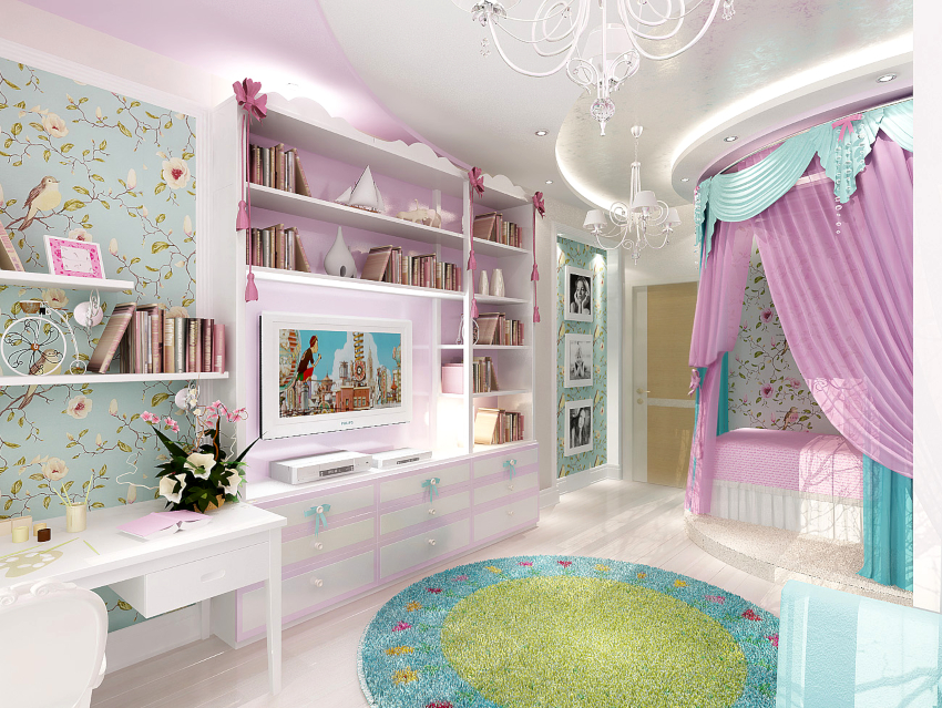 Semasa mengatur bahagian dalam bilik gadis, disarankan untuk memberi perhatian khusus pada tekstil, kerana kualiti kain yang menentukan nada umum untuk karakter bilik.