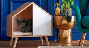 Sebuah rumah dengan atap sering dibeli untuk kucing, tetapi anjing mini juga tidak keberatan tidur di tempat tidur ini.