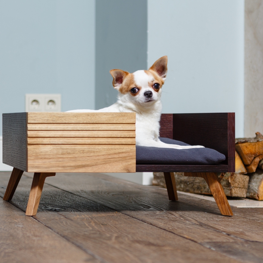 Penyelesaian yang tidak biasa adalah menggunakan meja di sebelah tempat tidur sebagai tempat tidur anjing.
