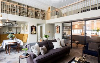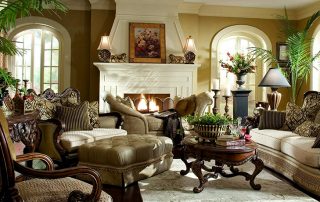 Gaya gabungan di pedalaman: ciri khas arah. Reka bentuk ruang: penamat, pemilihan lampu. Pengenalan elemen eklektikisme.