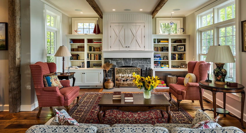 Gaya desa di pedalaman: ciri khas arah. Bahan untuk menyelesaikan premis. Gaya dalaman desa: perabot, hiasan, pencahayaan dan tekstil. Reka bentuk bilik.