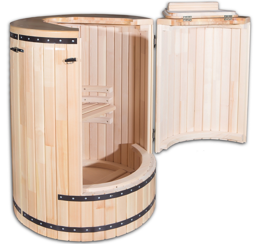 Varieti sauna mudah alih: tong dan kabin kain