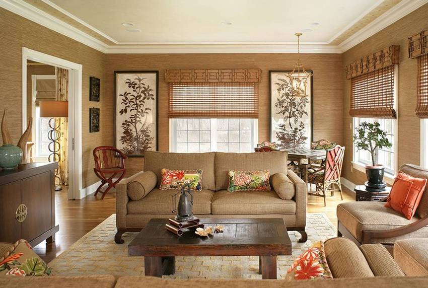 Pembaikan rumah dalam gaya Cina didasarkan pada falsafah Feng Shui, yang menyiratkan organisasi ruang yang rasional sesuai dengan aliran tenaga. Tetapan ini mempunyai penampilan yang ekspresif dan sekaligus menenangkan. Tidak ada sudut tajam dan garis tajam, bahan semula jadi digunakan.