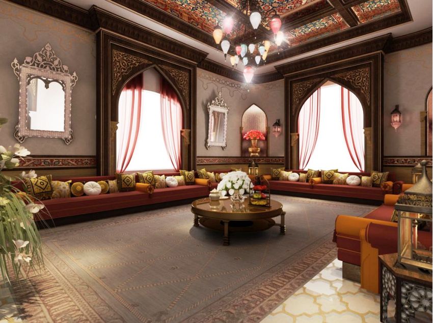 Beberapa negara Timur yang cerah dan cerah melahirkan seluruh keluarga gaya oriental. Di antaranya, bahasa Arab menempati tempat yang istimewa, yang terutama menyiratkan kemewahan dan kekayaan, yang ditunjukkan dengan banyaknya hiasan dan penyepuhan, permaidani dan kayu ukiran. Elemen utama dalamannya adalah lengkungan dengan bentuk bulat, lampu terang yang terbuat dari kaca pelbagai warna. Ia dikuasai oleh warna emas dan merah, warna kuning dan pastel dibenarkan. Pelbagai corak mesti ada di dinding dan lantai. Gaya dicirikan oleh: