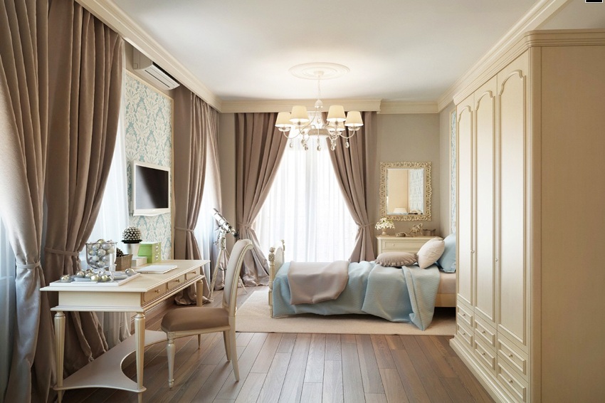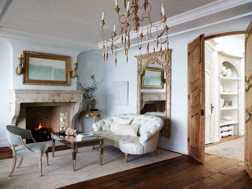 Bahagian dalaman Perancis dalam reka bentuk klasiknya adalah sebuah ruangan yang dibuat dengan warna pastel, dengan hiasan yang elegan dalam bentuk lukisan, cermin, pasu dan lampu, meniru bentuk lilin. Ia dicirikan oleh garis halus, cetakan stuko kaya dan vintaj. Palet pastel sebuah apartmen dalam gaya ini boleh merangkumi warna kuning air, putih, merah jambu, biru dan kuning dengan hiasan dalam warna-warna logam dan emas. Perabotnya anggun dan barang-barang seperti meja solek atau meja solek dialu-alukan. Sifat yang dapat dilihat dengan jelas dalam persepsi visual pedalaman Perancis: