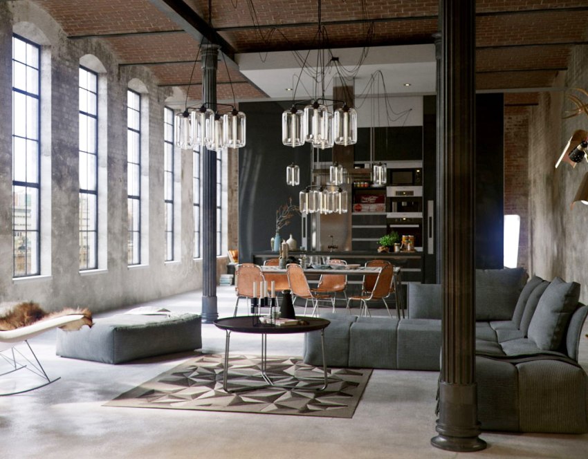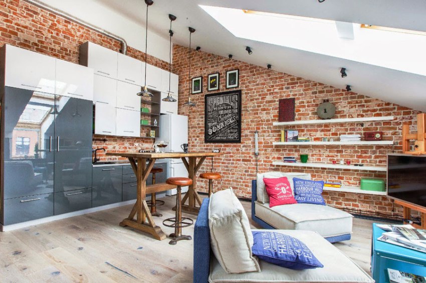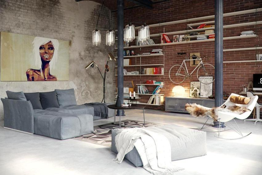 Gaya loteng muncul pada 30-an abad yang lalu, ketika bengkel industri mula digunakan secara aktif untuk perumahan. Kini, reka bentuk gaya perumahan untuk pekerja telah menjadi salah satu kawasan termahal dalam reka bentuk dalaman. Selalunya, loteng dipilih oleh individu kreatif, kerana ia memikat dengan rasa lapang dan semangat kebebasan. Unsur khas gaya itu adalah dinding bata atau konkrit tanpa plaster, paip dan wayar yang tergantung. Semua ini harus dibentuk dengan cekap dan rapi, yang akhirnya menggambarkan: