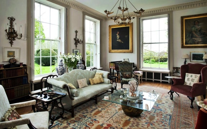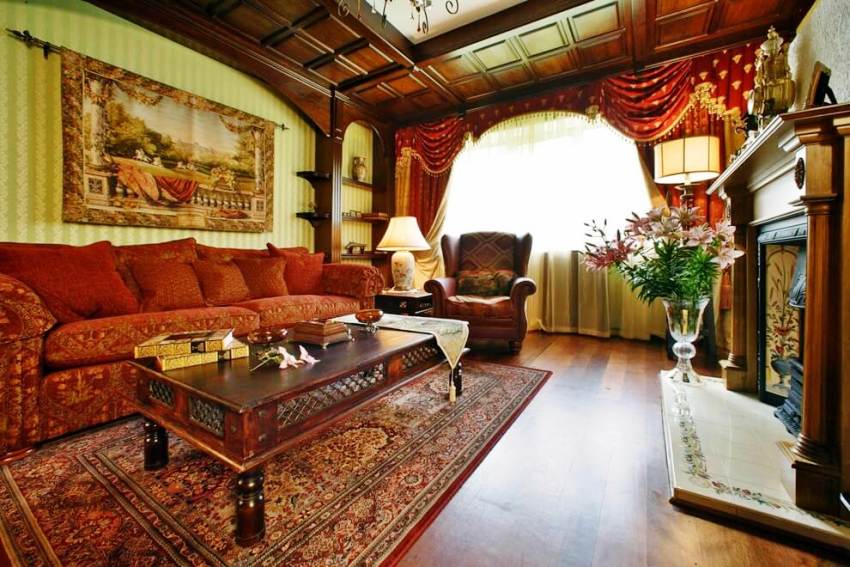 Kepatuhan orang Inggeris terhadap tradisi tercermin dalam gaya perumahan. Oleh itu, bahagian dalamnya mengandungi objek yang diperbuat daripada kayu semula jadi dan aksesori yang elegan. Bahagian dalaman Inggeris yang khas adalah rak buku dengan rak terbuka, perapian, kerusi berlengan dan sofa di tengah-tengah bilik, kerana tidak biasa di England meletakkan perabot di dinding untuk mengosongkan ruang. Kemasan dan perabotnya hangat dan lembut. Ciri-ciri gaya khas berikut dapat diperhatikan: