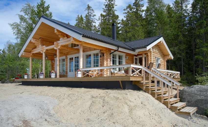 Bagi mereka yang ingin mewujudkan tempat yang selesa untuk percutian musim panas, ada peluang untuk membeli sauna log dengan teres atau beranda. Ini benar terutamanya untuk kawasan kecil. Kawasan bersantai boleh dipindahkan ke teras atau beranda, sehingga meningkatkan ukuran bilik wap dan pancuran. Foto projek mandi dari balak dengan jelas memaparkan pelbagai pilihan untuk pelaksanaan rumah kayu. Perlu diingat bahawa ini adalah pilihan yang baik hanya untuk musim panas.Untuk tempoh musim sejuk, beranda atau teres harus dilindungi.