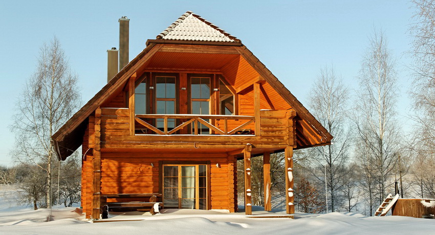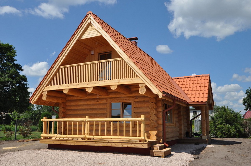 Nasihat berguna! Projek rumah mandi 6 x 4 dengan loteng dapat diperbaiki dengan menambahkan balkoni yang luas ke tingkat atas, dari mana pemandangan indah di sekitarnya akan dibuka.